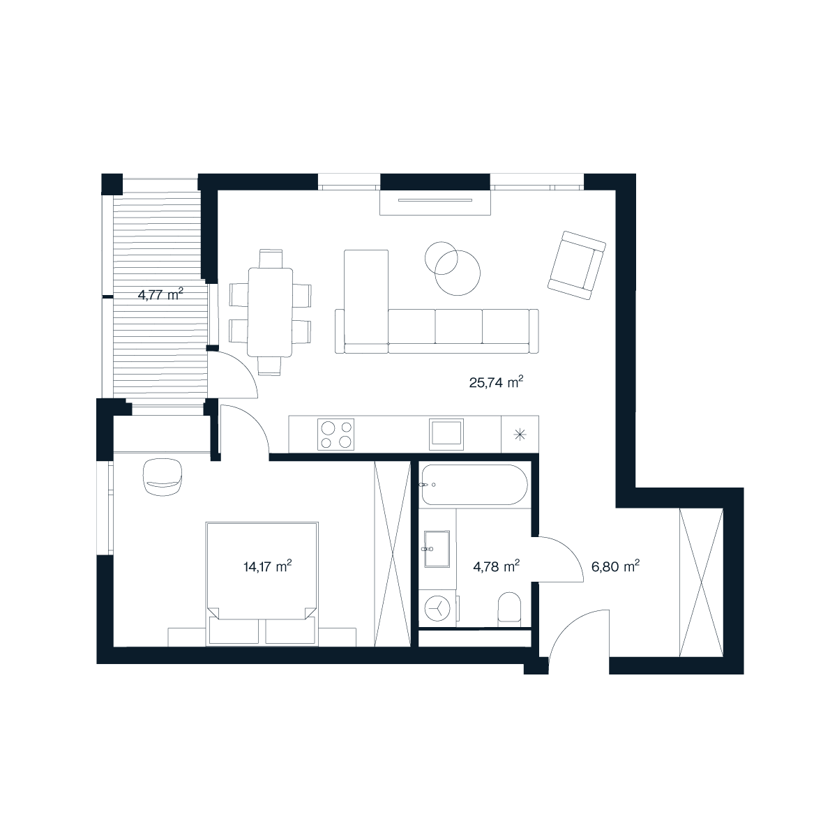 lodžijos plotas4,77 m²